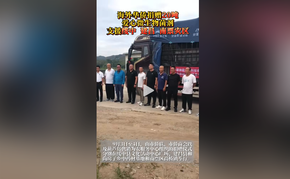 海外華僑捐贈(zèng)20噸愛心微生物菌劑支援綏中、建昌、南票災(zāi)區(qū)